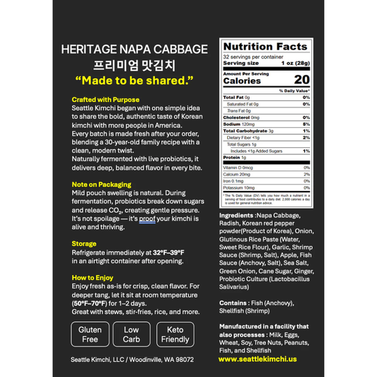 [Seattle Kimchi] Heritage Napa Cabbage Kimchi 24oz (700g) / 프리미엄 맛김치